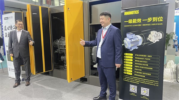 低壓電機(jī)作為壓縮機(jī)的核心部件之一,對于壓縮機(jī)的節(jié)能具有重要意義。本次展會,茵夢達(dá)低壓電機(jī)事業(yè)部聯(lián)合富諾爾(天津)壓縮機(jī)科技有限公司,攜搭載著茵夢達(dá)全新國標(biāo)一級能效IE5低壓電動機(jī)1LE8005的FMI-200 AVSD螺桿壓縮機(jī)亮相該展會。這一全新產(chǎn)品旨在幫助全行業(yè)生產(chǎn)型客戶保障生產(chǎn)過程的持續(xù)穩(wěn)定與運營,實現(xiàn)降本增效、減少能耗、降低碳排放、賦能全新綠色低碳社會。